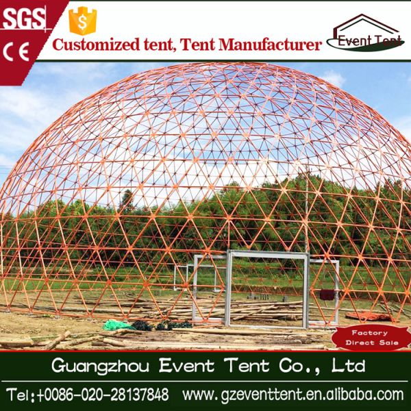 The Min. of our Dome Tent is from 4m (13ft) to 60m (197ft) Diameter. We got all galss walls and hard pressed extruded Aluminum Alloy T6061/T6 frame structure.